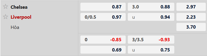 Thông tin tỷ lệ kèo bóng đá Chelsea vs Liverpool: