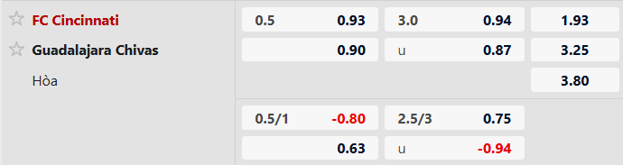 Thông tin tỷ lệ kèo Cincinnati vs Guadalajara: