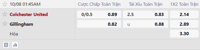 Thông tin kèo bóng đá Colchester United vs Gillingham: