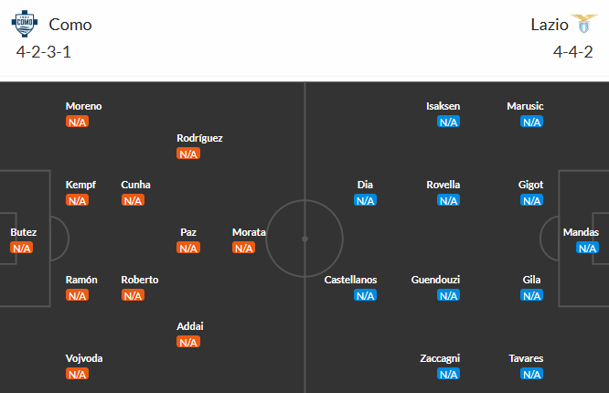 Dù vậy, vị chiến lược gia kỳ cựu vẫn khẳng định quyết tâm cùng Biancocelesti đua top 6. Hai chiến thắng giao hữu trước Burnley và Atromitos phần nào giúp tinh thần đội bóng ổn định trở lại. Xét về truyền thống, Lazio có lợi thế rõ rệt khi thắng 5/6 trận mở màn Serie A gần nhất. Tuy nhiên, Como hiện nay đã khác, đặc biệt khi được chơi trên sân nhà và có lực lượng tăng cường chất lượng.