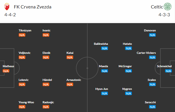 Đội hình dự kiến Crvena Zvezda vs Celtic: