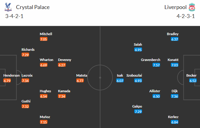 Đội hình dự kiến Crystal Palace vs Liverpool: