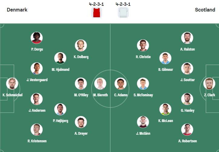 Đội hình dự kiến Đan Mạch vs Scotland: