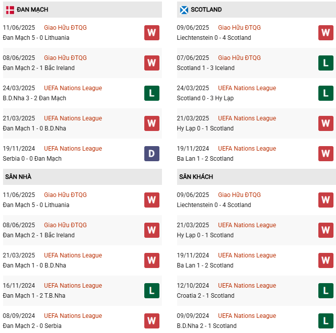 Thống kê phong độ Đan Mạch vs Scotland: