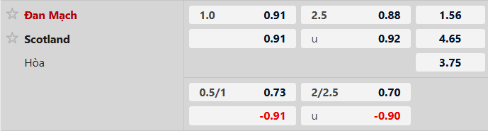 Thông tin tỷ lệ kèo bóng đá Đan Mạch vs Scotland: