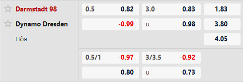 Darmstadt chấp 1/2 bàn cả trận. Từ năm 2019 đến nay, Darmstadt bất bại 6 trận liên tiếp trước Dynamo Dresden, trong đó có 5 chiến thắng. Trên sân nhà, họ cũng chưa từng thua Dresden, với thành tích 2 thắng và 2 hòa sau 4 trận. Vì lẽ này, kèo trên nên được theo cược.
