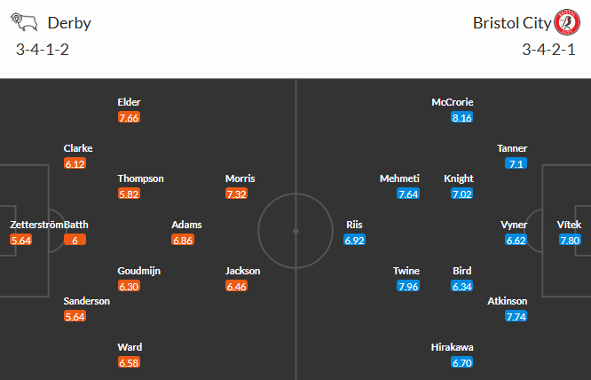 Đội hình dự kiến Derby County vs Bristol City: