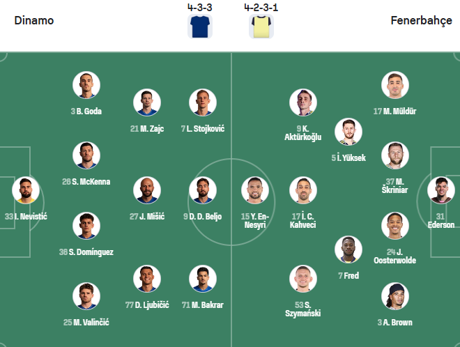 Đội hình dự kiến Dinamo Zagreb vs Fenerbahce:
