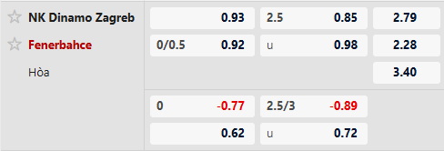 Thông tin tỷ lệ kèo Dinamo Zagreb vs Fenerbahce: