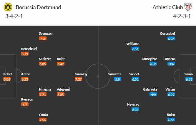 Với hàng công 1 bàn trong 5 trận gần nhất, rất khó để người hâm mộ Athletic Bilbao hy vọng việc họ tạo ra nhiều bàn thắng vào lưới Dortmund. Đặc biệt trong hoàn cảnh Dortmund có 4 trong 5 trận gần nhất giữ sạch lưới. Trận đấu duy nhất Dortmund thủng lưới đó là hoà 4-4 trước Juventus. Chính vì vậy cuộc chiến này khó mà xuất hiện nhiều bàn, mặc cho Dortmund có hiệu suất 2.4 bàn/1 trận trong 5 trận gần nhất.