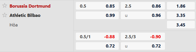 Thông tin kèo bóng đá Dortmund vs Bilbao: