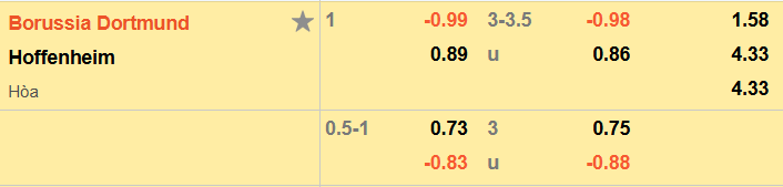Soi kèo châu Á Dortmund vs Hoffenheim: