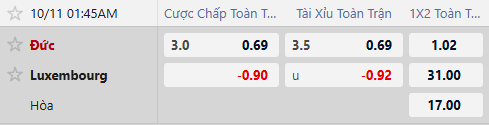 Thông tin tỷ lệ kèo bóng đá Đức vs Luxembourg: