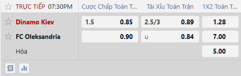 Thông tin tỷ lệ Dynamo Kyiv vs Oleksandriya: