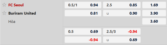 Thông tin tỷ lệ FC Seoul vs Buriram United: