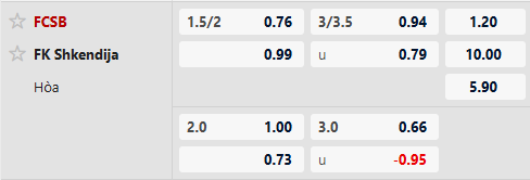 Không quá ngạc nhiên khi FCSB đang là đội được đánh giá cao hơn với mức chấp 1 3/4 bàn. Tương đối khó để FCSB có thể thắng cách biệt trước KF Shkendija khi đội khách đang có được phong độ rất cao. Với chất lượng nhân sự vượt trội, FCSB vẫn đủ khả năng để đánh bại KF Shkendija sau 90 phút nhưng đội khách mới là lựa chọn đáng tin cậy hơn nhiều ở mảng kèo châu Á.