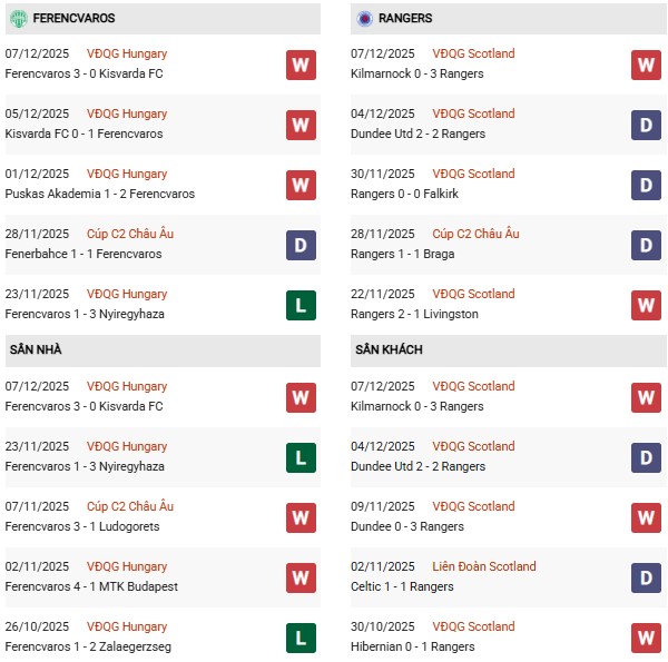 Phong độ của Ferencvaros vs Rangers không quá khác biệt. Trong khi Ferencvaros chỉ thua 1/5 trận gần nhất thì Rangers bất bại ở cùng thời gian