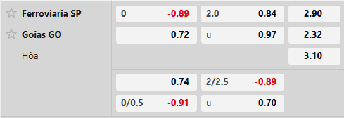 Tỷ lệ đồng banh (0:0), phản ánh đúng sự cân bằng giữa hai đội. Ferroviaria có lợi thế sân nhà, nhưng phong độ thất thường cùng hàng thủ hay mắc sai lầm khiến giới đầu tư khó tin tưởng. Trong khi đó, Goias lại cho thấy sự chắc chắn và giàu kinh nghiệm hơn, đặc biệt họ vừa có chiến thắng quan trọng để tạo tâm lý hưng phấn. Với kịch bản này, lựa chọn Goias được xem là hợp lý.