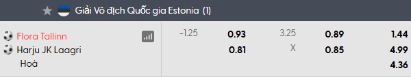 Thông tin tỷ lệ Flora Tallinn vs Harju JK: