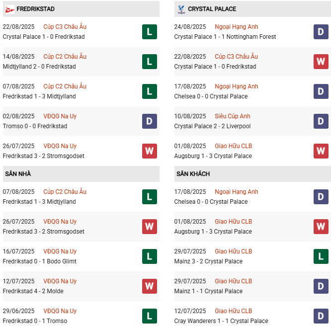 Ở chiều ngược lại, Fredrikstad – nhà vô địch Cúp Na Uy 2024 và đội xếp hạng sáu Eliteserien mùa trước, đang có lần trở lại châu Âu đầu tiên sau 16 năm. Dưới sự dẫn dắt của HLV trẻ Andreas Hagen, họ bắt đầu mùa hè ở Europa League nhưng bị loại bởi Midtjylland với tổng tỷ số 1-5. Thất bại đó đẩy họ xuống Conference League, nơi đội bóng Na Uy tiếp tục nhận thêm trận thua trước Palace ở lượt đi play-off.