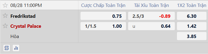 Thông tin tỷ lệ bóng đá Fredrikstad vs Crystal Palace: