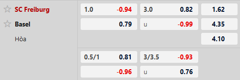 Thông tin tỷ lệ kèo Freiburg vs Basel: