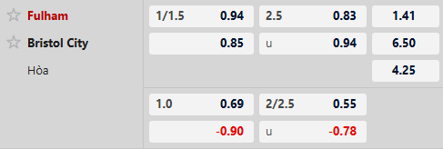 Thông tin tỷ lệ bóng đá Fulham vs Bristol City: