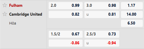 Thông tin tỷ lệ bóng đá Fulham vs Cambridge: