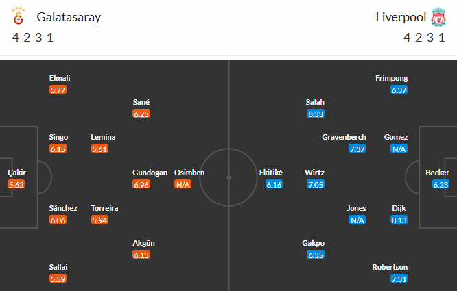 Đội hình dự kiến Galatasaray vs Liverpool:
