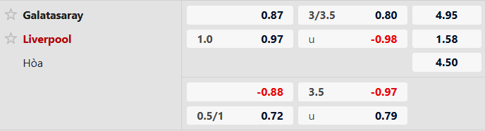 Thông tin tỷ lệ kèo bóng đá Galatasaray vs Liverpool: