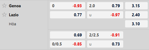 Thông tin tỷ lệ kèo bóng đá Genoa vs Lazio: