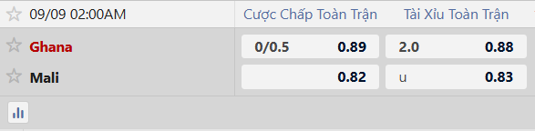 Thông tin tỷ lệ bóng đá Ghana vs Mali: