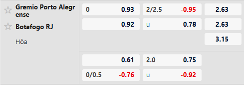 Thông tin tỷ lệ bóng đá Gremio vs Botafogo: