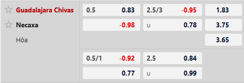 Thông tin tỷ lệ kèo Guadalajara vs Necaxa: