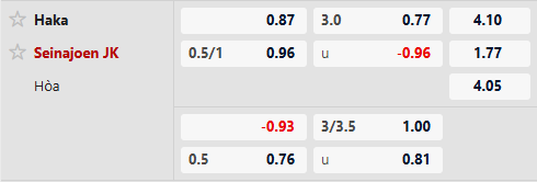 Ở chiều ngược lại, Haka đã thua liền 4 trận. Bảy vòng đấu gần nhất, Haka chỉ “ăn” được đúng 1 điểm, từ kết quả hòa trước Mariehamn, chịu thất bại trong 6 trận còn lại. 4 trận sân nhà mới đây tại giải VĐQG Phần Lan, Haka thậm chí còn… thua 100%. Trước một đối thủ chìm sâu trong khủng hoảng như Haka, không có gì bất ngờ nếu đội khách SJK ăn trọn 3 điểm.