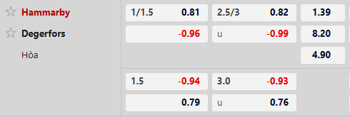 Thông tin tỷ lệ Hammarby vs Degerfors: