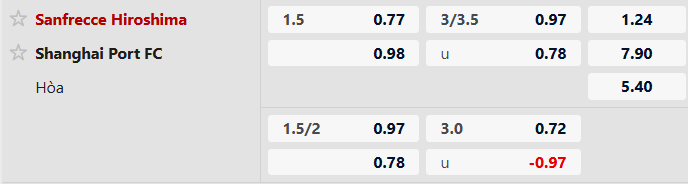 Thông tin tỷ lệ kèo Hiroshima vs Shanghai Port: