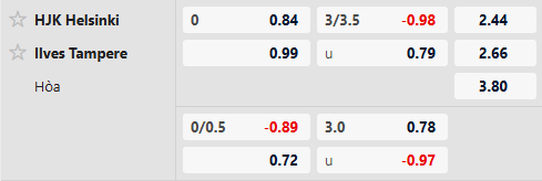 Thông tin tỷ lệ kèo HJK Helsinki vs Ilves: