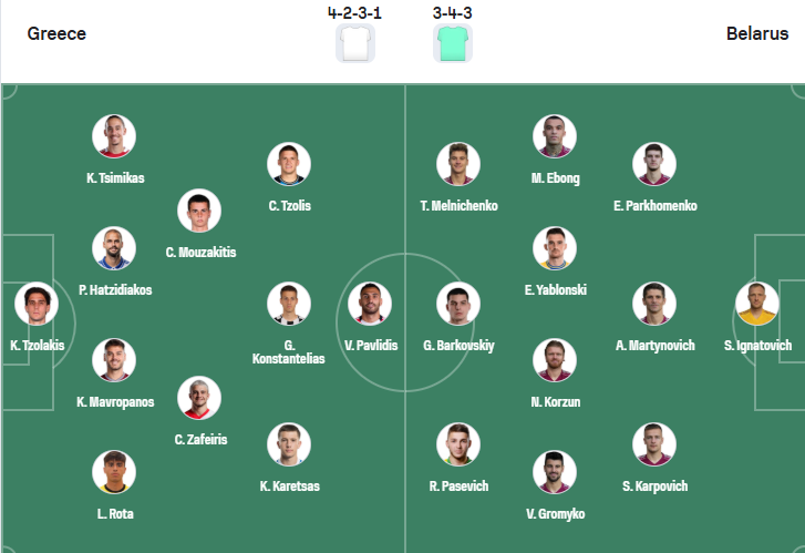 Thông tin lực lượng Hy Lạp vs Belarus: