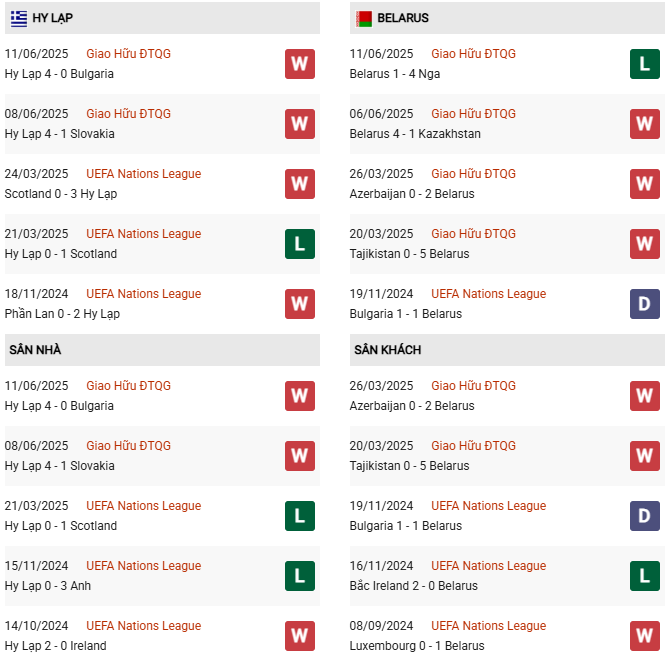 Thống kê phong độ Hy Lạp vs Belarus: