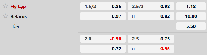 Thông tin tỷ lệ bóng đá Hy Lạp vs Belarus:
