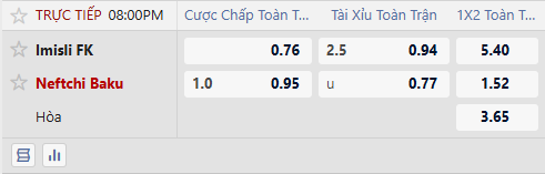Thông tin tỷ lệ bóng đá Imisli vs Neftchi Baku: