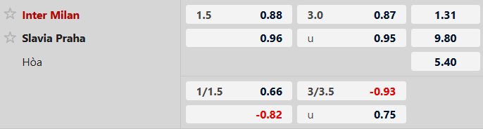 Thông tin tỷ lệ bóng đá Inter Milan vs Slavia Praha: