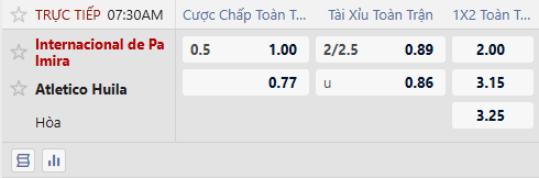Trên sàn giao dịch, Inter Palmira được xếp cửa trên với mức chấp 1/2 bàn. Đây là mức kèo phản ánh đúng lợi thế sân nhà, nhưng xét về phong độ tổng thể, Inter Palmira chưa tạo được sự tin cậy cao. Ngược lại, Huila với lối chơi chắc chắn và khả năng phòng ngự tốt hoàn toàn có thể gây ra khó khăn cho đội chủ nhà. Vì vậy, lựa chọn Atletico Huila sẽ là phương án an toàn hơn.