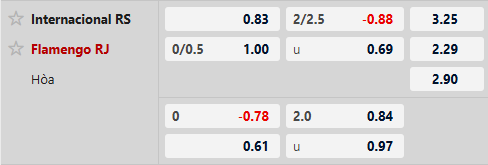 Thông tin tỷ lệ kèo Internacional vs Flamengo: