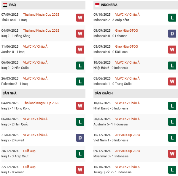 Thống kê phong độ Iraq vs Indonesia: