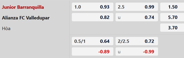 Thông tin tỷ lệ Junior vs Alianza Valledupar: