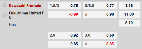 Thông tin tỷ lệ Kawasaki Frontale vs Fukushima: