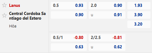 Thông tin tỷ lệ Lanus vs Central Cordoba: