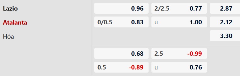 Soi kèo châu Á Lazio vs Atalanta: